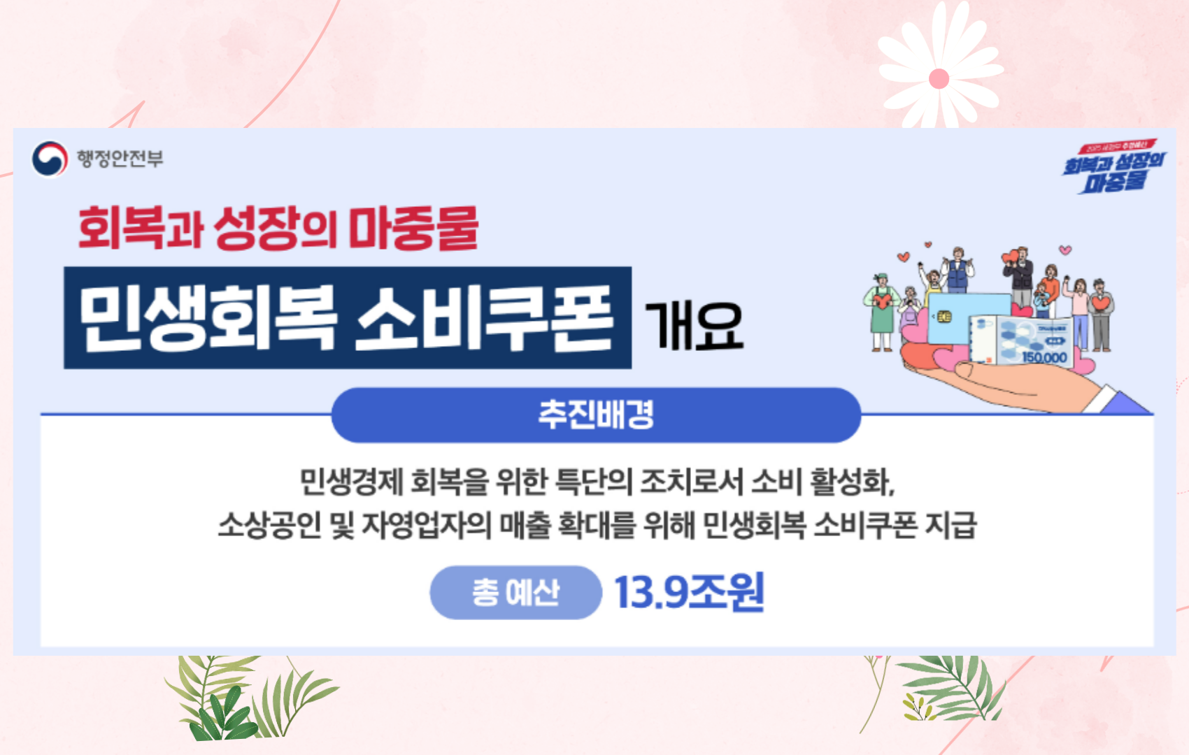 민생회복 소비 쿠폰은 기간 내에 꼭 신청해야만 받을 수 있는 지원금입니다.