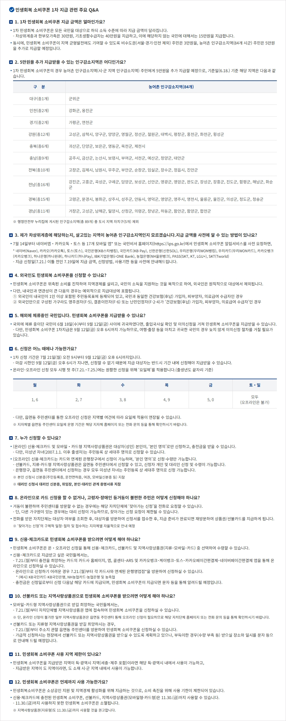 - 정부가 소상공인 매출 회복과 민생 경제 활성화를 위해 전국민에게 지급하는 소비지원금