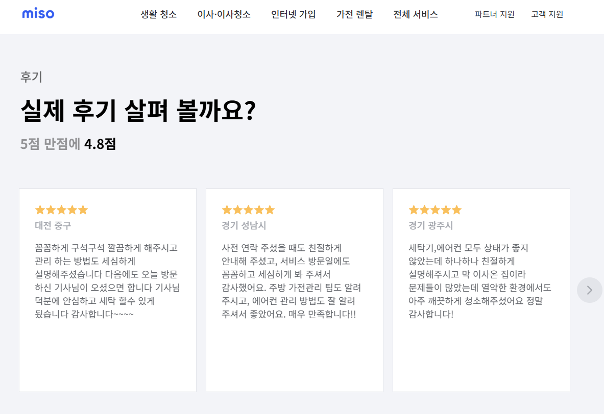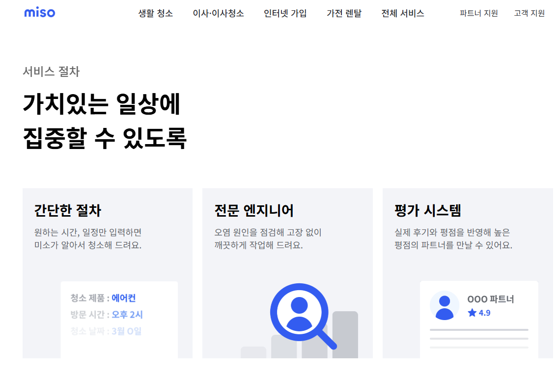 미소 홈서비스 | 59,000원~ | 앱 예약 | A/S 3일 내 보장, 실시간 스케줄 조정 | 앱 예약 |