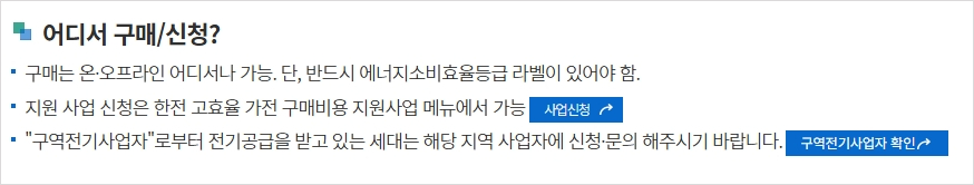 📌 신청 방법 : 한전 고효율 가전 구매비용 지원사업 홈페이지 (*로그인 후 신청)